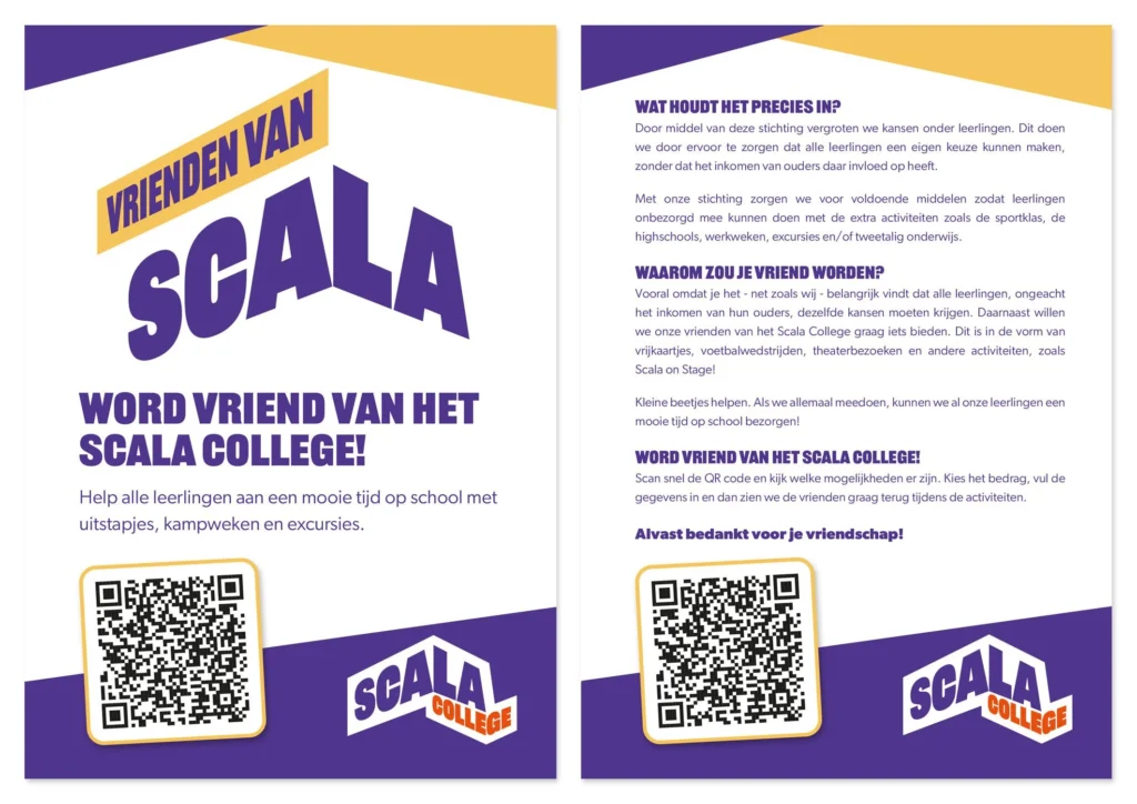 De stichting Vrienden van het Scala College is opgericht in december 2018 om de kansengelijkheid van leerlingen op het Scala College te bevorderen. De stichting is van mening dat de plaats waar je wieg heeft gestaan niet van invloed mag zijn op je schoolcarrière en je kansen om je te ontwikkelen.